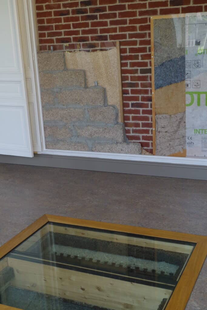 – Plancher bas : panneaux de liège et Métisse (isolant textile recyclé).