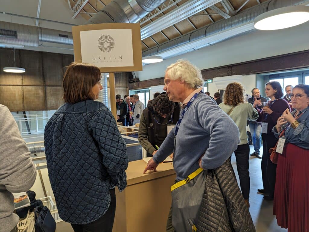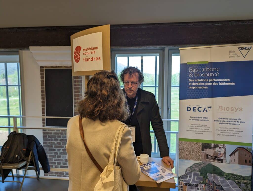 ➜ Des chantiers phares régionaux : Le répertoire des projets en région alimente la cartographie des projets terminés de Construire en Chanvre, donnant la visibilité à des Maîtrises d’Ouvrages sur les constructions et rénovations en région pour de futurs projets. La rénovation de l’imprimerie Daniel en Conservatoire de Musique pour la ville de Loos en est un exemple parlant. Justine Labérenne de l’agence d’Architecture Béal Blanckaert et Amandine Goudard de l’entreprise ORIGIN rénovation Responsable était toutes deux présentes pour présenter ce chantier d’envergure, démonstrateurs des techniques du chanvre (blocs et projection) et de la terre crue, ainsi que de l’architecture frugale.