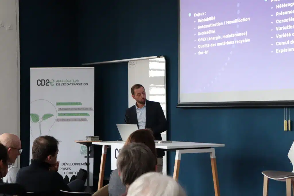 L’EIT, c’est organiser le tri et les flux entre entreprises et territoires. Cet atelier, animé par Marlene Gamelin (ECOPAL) et Cyril Scribot (CD2E), invitait à réfléchir à la transformation des pertes d’une activité en matériaux circulaires pour une autre. Comme quoi, la transition, c’est parfois juste du voisinage bien organisé !