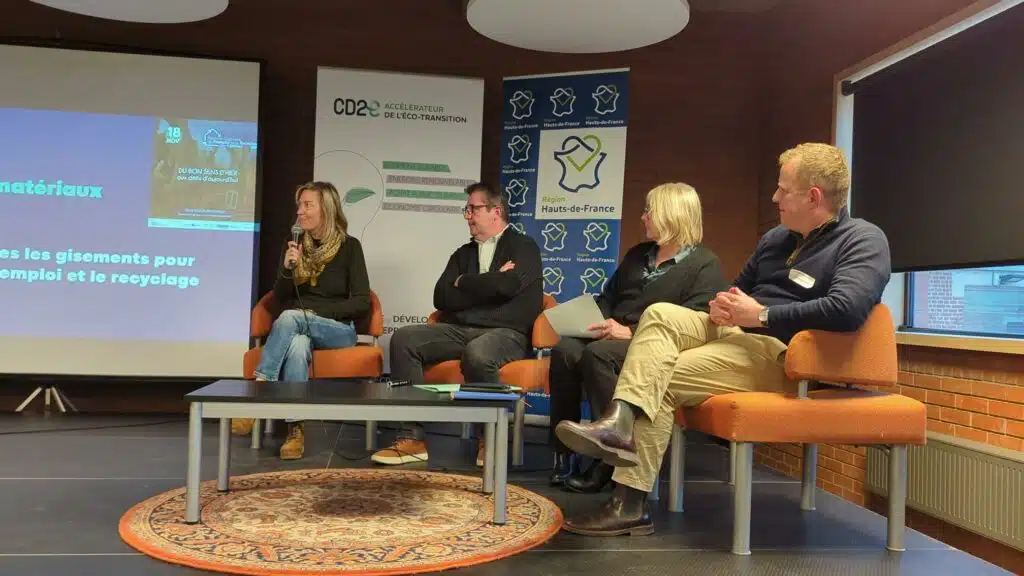 Une table ronde autour de l’écoconception et de l’ACV, mais avant tout, du bon sens. Celui des bâtisseurs d’hier, qui savaient faire durer, réparer, réutiliser. Aujourd’hui, il faut garder cet esprit, mais l’adapter aux réalités actuelles : décarbonation, nouvelles réglementations, pression sur les ressources. Concevoir un bâtiment, ce n’est plus seulement penser sa construction, c’est aussi anticiper sa transformation et sa fin de vie. Valérie Leroy-Couque (Région Hauts-de-France), François Humbert (ADEME), Romain Vermaut (CARSAT), Fabien Prouvost (ENVERGURE Architecture) et Denis Plancque (HABITER2030) ont parlé réemploi, recyclage, impact carbone, cycle de vie des matériaux… tout se joue dès la conception.