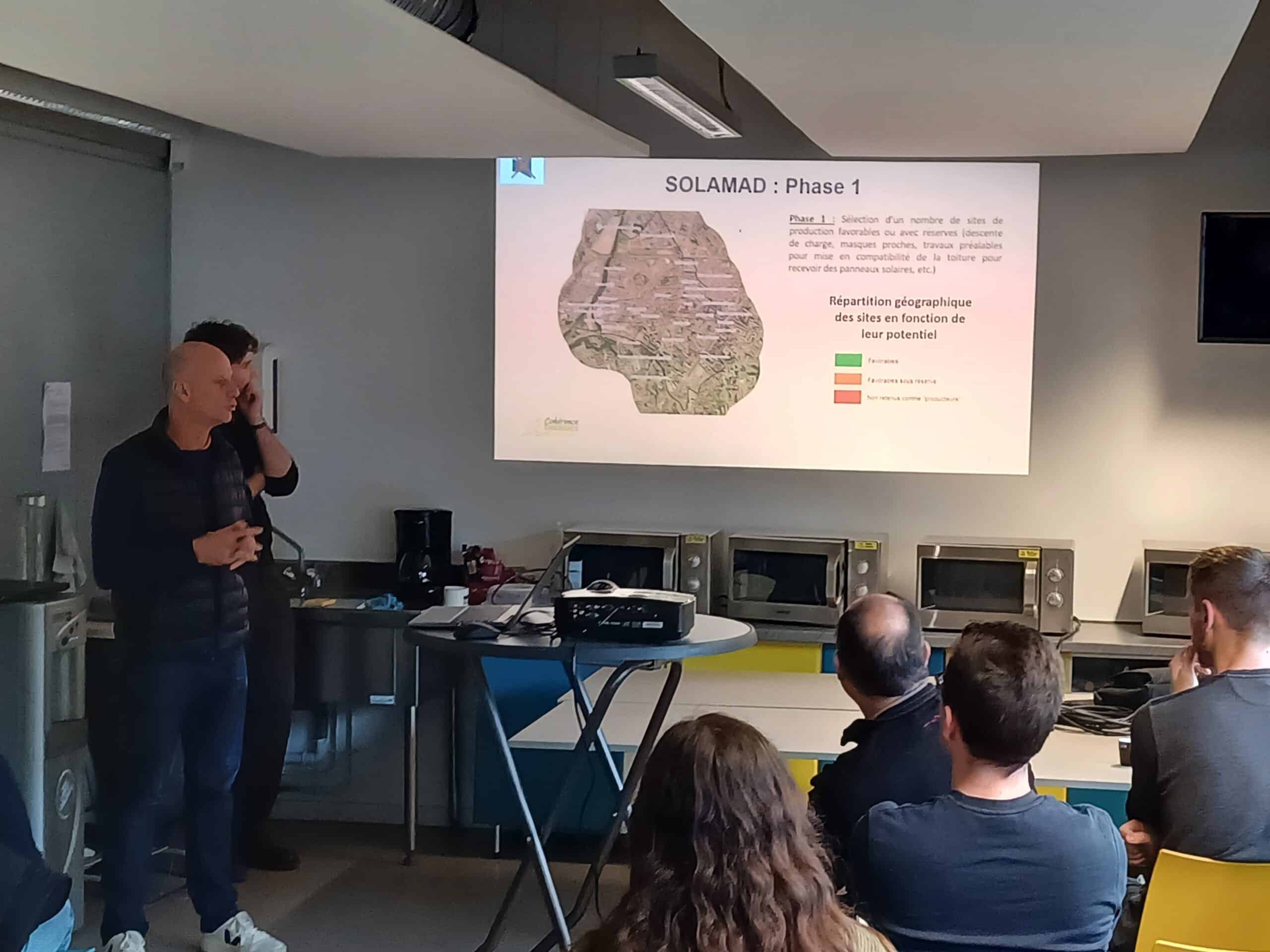 Après une présentation croisée de la maîtrise d’ouvrage (MOA) et de la maîtrise d’œuvre (MOE), un temps d’échanges particulièrement riche s’est engagé avec la vingtaine de participants. De nombreux sujets très opérationnels ont pu être abordés, notamment la rentabilité du projet, le contrôle des factures des fournisseurs de complément, le choix des sites consommateurs, le rôle du Responsable d’Équilibre, la maintenance des installations, le suivi d’exploitation de la boucle d’autoconsommation ainsi que les pistes d’optimisation.