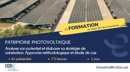 Vous avez un patrimoine (bâtiment, parking, foncier dégradé) et vous vous questionnez sur la pertinence de sa solarisation ? Cette formation vous permettra de réaliser une 1° analyse et de poser les premières bases de votre stratégie de solarisation.