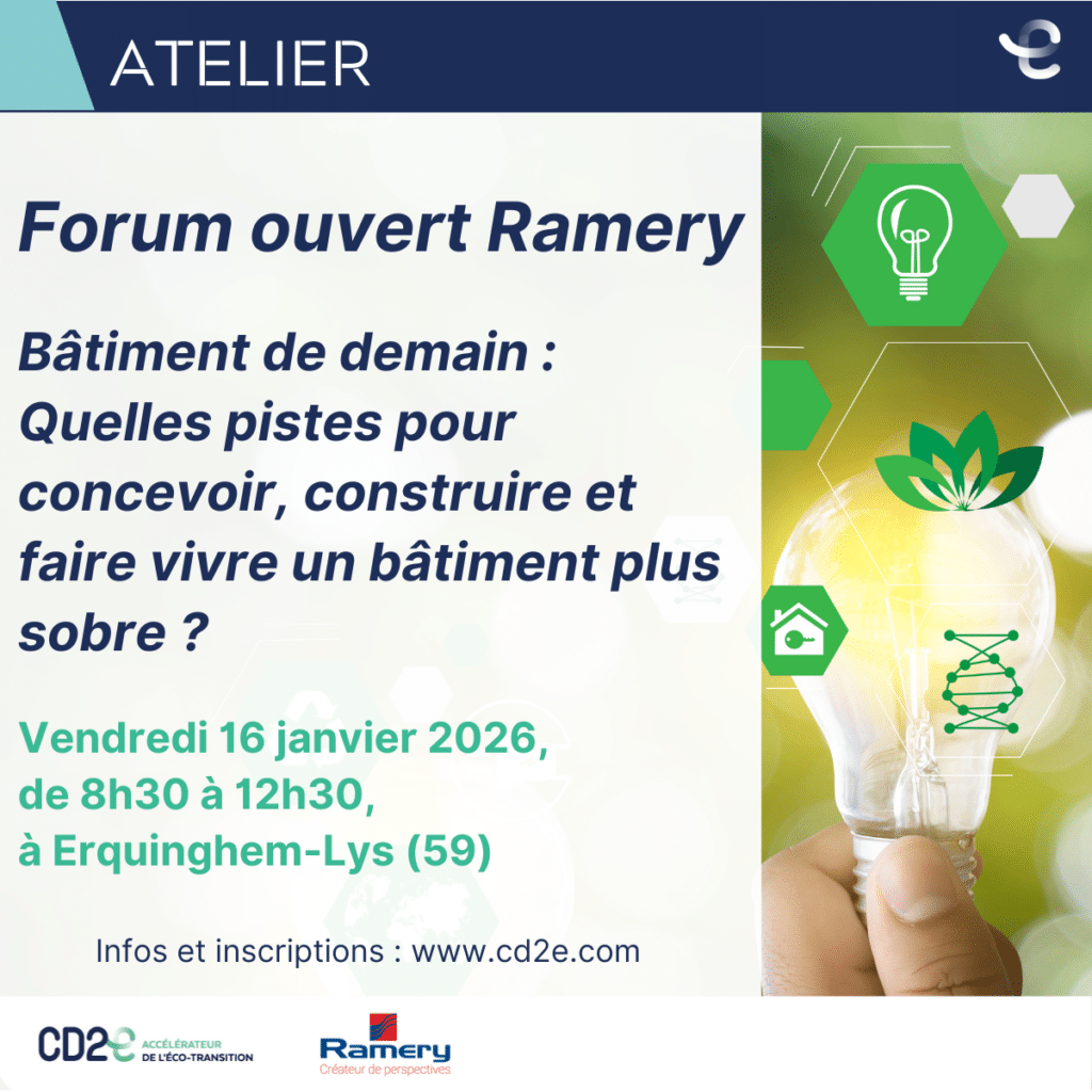 L’entreprise Ramery et son partenaire CD2E organisent le vendredi 16 janvier 2026 un forum ouvert au bâtiment Orygine à Erquinghem-Lys pour imaginer ensemble les enjeux et évolutions du bâtiment de demain.