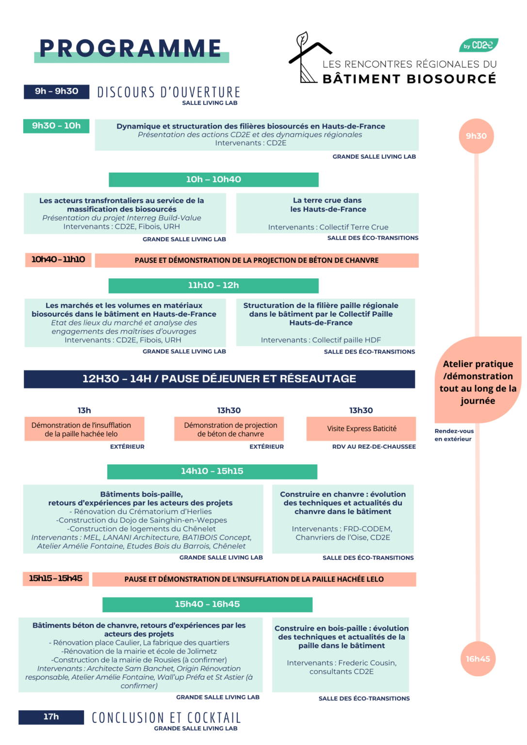 Nous vous attendons nombreux.ses aux 1ères Rencontres Régionales du Bâtiment Biosourcé, l’événement annuel du CD2E sur les matériaux biosourcés !