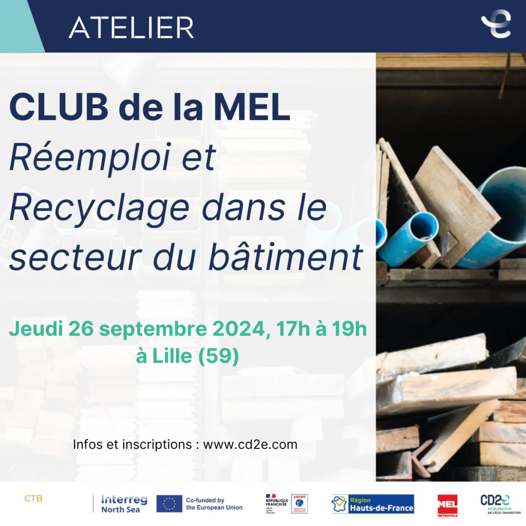 Depuis 2022, la MEL soutient le CD2E qui anime un club d’entreprises sur le réemploi et le recyclage dans le bâtiment, dans le but de favoriser l’information, le partage des bonnes pratiques et de répondre aux difficultés des acteurs.