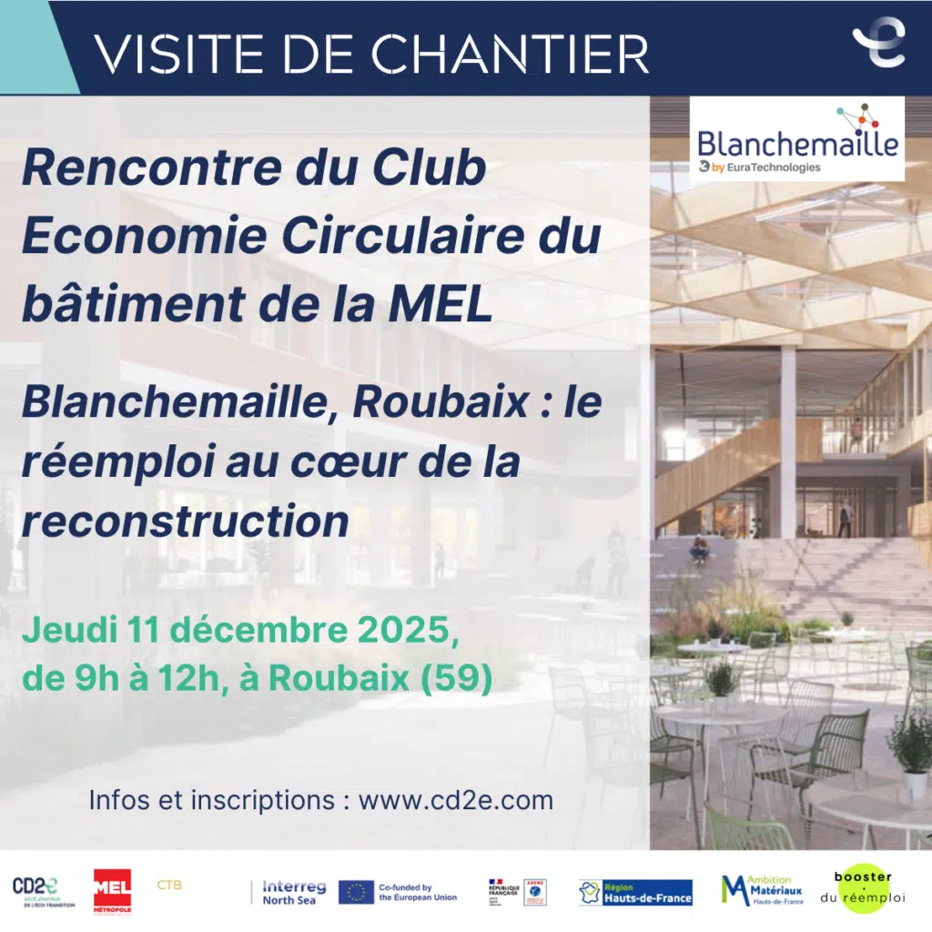 La MEL et le CD2E vous invitent à découvrir le chantier de Blanchemaille à Roubaix, un projet exemplaire de réhabilitation circulaire mené par la Métropole Européenne de Lille et conçu par SAA Architectes.