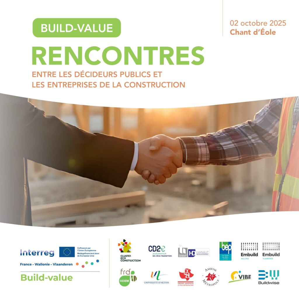 Les Rencontres Build Value prennent place au Chant d’Éole pour une édition transfrontalière inédite : une journée de rencontres entre entreprises de la construction et acteurs publics, dans un cadre inspirant, pour découvrir des projets réalisés avec des écomatériaux et valoriser les savoir-faire locaux.