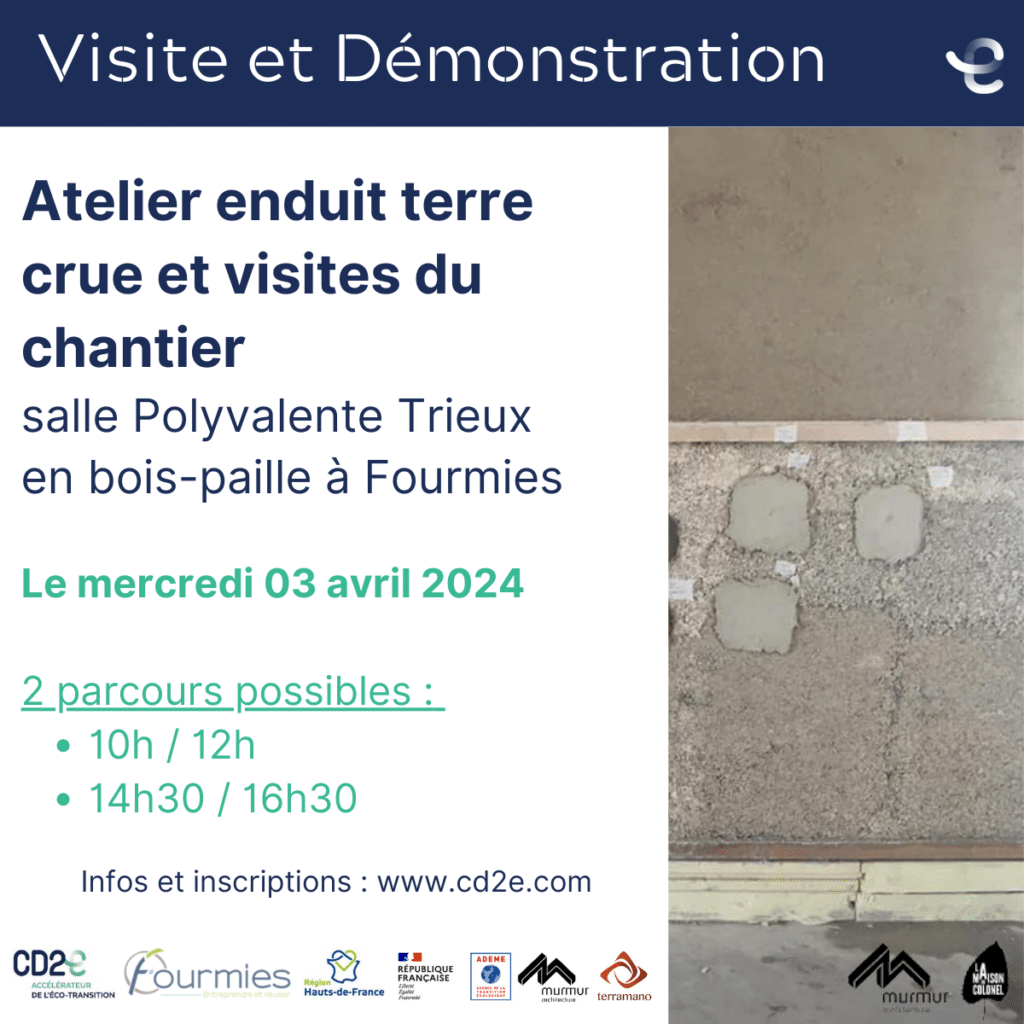 Venez profiter d’un moment de terrain pour plonger dans le remarquable chantier en bois régional, paille, métisse, terre crue de la « salle Polyvalente Trieux » de Fourmies : près de 700 m² faisant appel à des ressources locales. Deux créneaux de visite du chantier sont organisés en parallèle d’un atelier participatif d’enduits en terre crue.