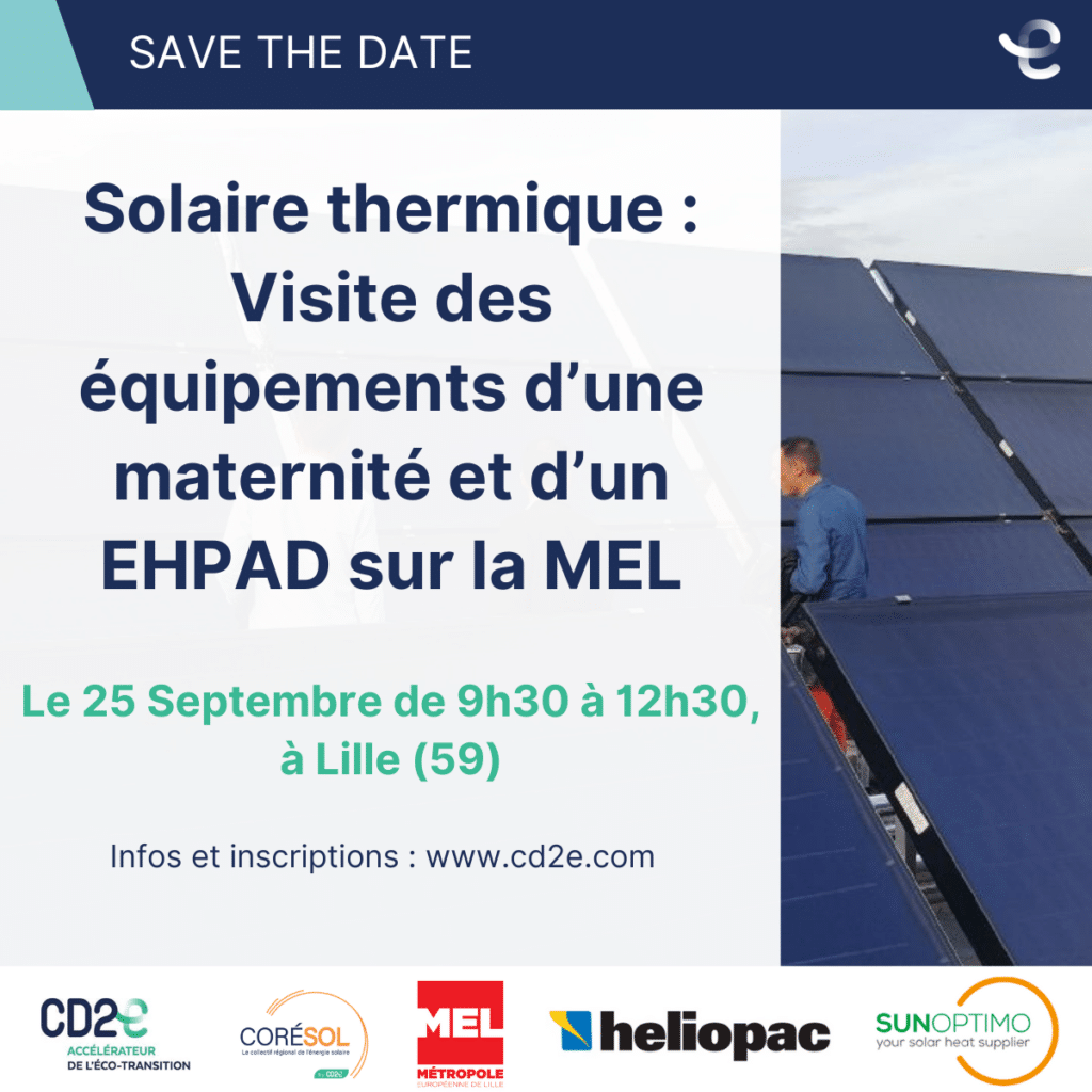 La Métropole Européenne de Lille (MEL) et le CORESOL (Collectif Régional de l’Energie Solaire) du CD2E vous invitent pour une matinée de visite d’installation solaire thermique sur un EHPAD et une maternité !