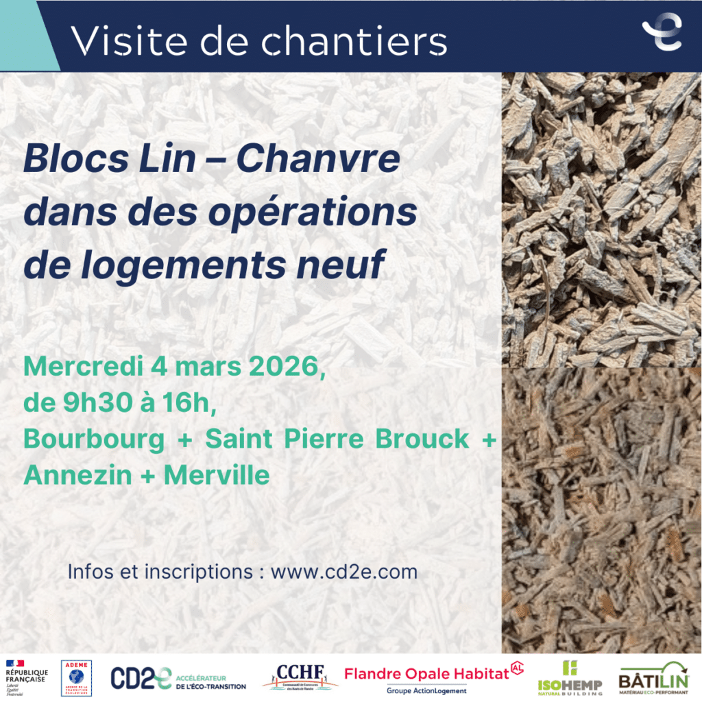 Le CD2E, Flandre Opale Habitat (FOH) et la CCHF vous invitent à découvrir deux opérations pilotes mettant en œuvre des blocs de béton végétal.